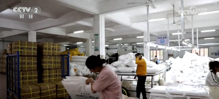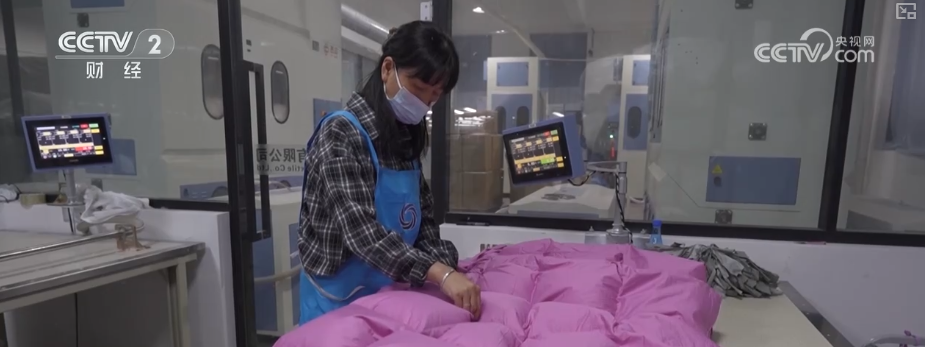 而在江苏泰州的这家丝绸企业,车间内工人们正娴熟拉制蚕丝网、赶制蚕丝被,缝制车间机器满负荷运转,三班轮岗赶订单。羽绒制品返单持续增加 原料加工企业满负荷运转