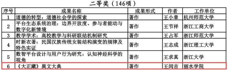 近日,浙江省哲学社会科学工作办公室公布浙江省第二十三届哲学社会科学优秀成果拟奖励名单。我院两项成果喜获二等奖。获奖项目分别为王闰吉老师的著作《〈大正藏〉異文大典》和蒋俊老师的著作《非洲族群政治研究》。
