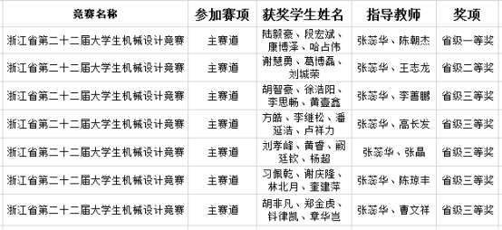 近日,由浙江省大学生科技竞赛委员会主办的浙江省第二十二届大学生机械设计竞赛决赛在浙江广厦建设职业技术大学圆满落幕。我校张蕊华教授等带领的学科竞赛团队斩获省一等奖1项、二等奖1项、三等奖5项。