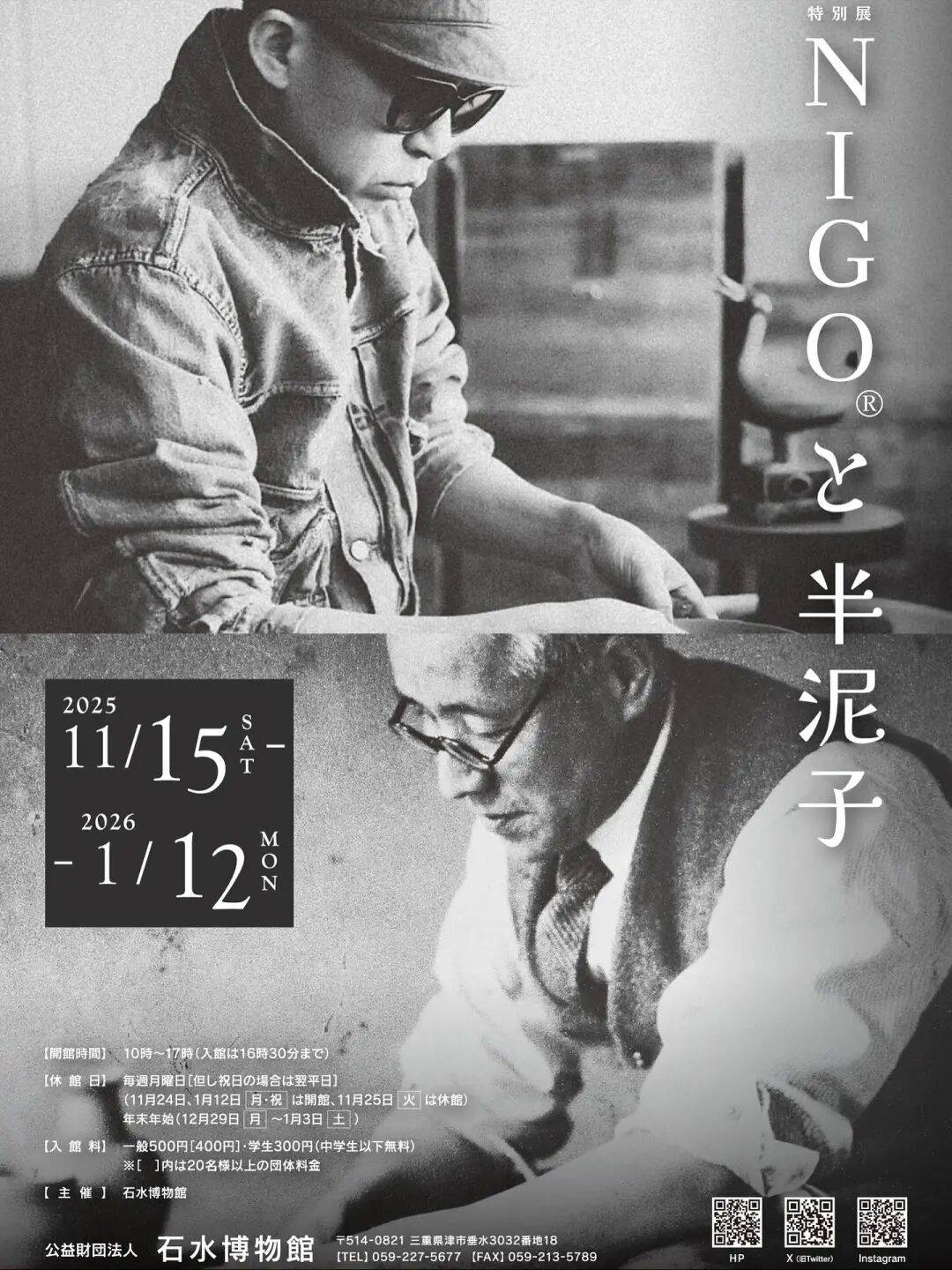 如今他正式宣布将于 11 月 15 日举办个人首次陶艺展览,持续时间到 2026 年 1 月 12 日,将会展出 NIGO® 本人制作的 25 件作品,以及他私人收藏的 55 件 Handeishi Kawakita(川喜田半泥子)的作品,展览地点是石水博物馆。