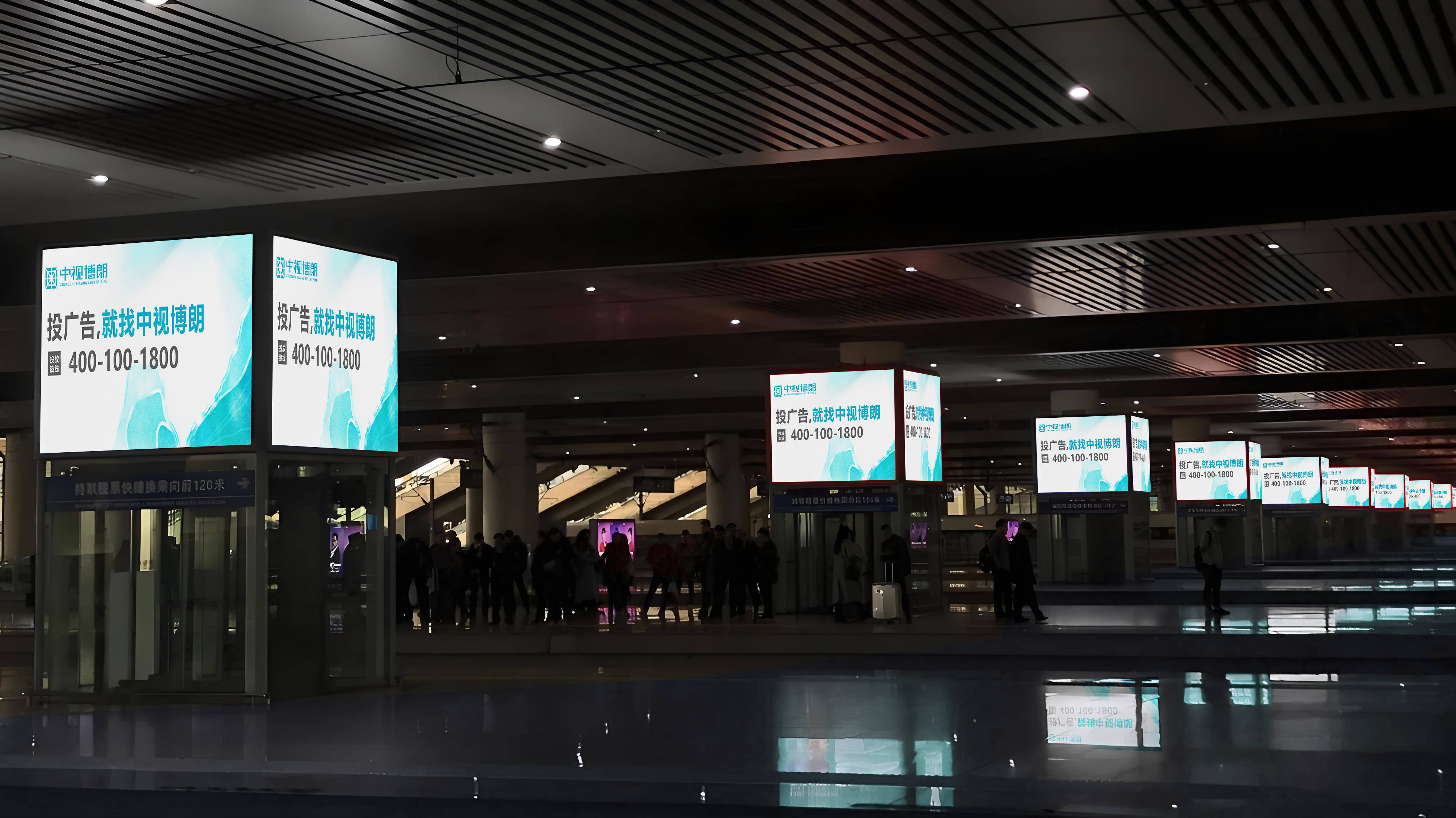 广告位特点:候车大厅座椅区是旅客停留时间最长的核心休憩区域,日均汇聚海量等待乘车的客流,人流密度大且停留时段稳定,旅客注意力相对放松,对周边信息的接收度较高;进站闸机两侧则是旅客进站的关键节点,覆盖所有进站客流。南京南站广告的这套电子刷屏套装以44块的大规模布局,实现了对休憩客流与进站客流的双重覆盖。高频次的画面更新配合高清显示效果,能够持续吸引旅客目光,让南京南站广告的信息在旅客停留过程中实现深度渗透;同时,多点位的密集排布确保了信息的全面覆盖,依托南京南站庞大的日均客流,让南京南站广告能够精准触达各类目标受众,提升传播效率。