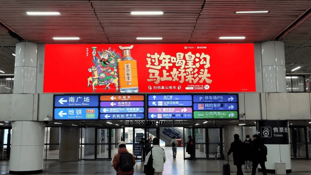 高端流量枢纽层面,北京西站、郑州东站等全国通大动脉客流量巨大,汇聚返乡与商旅核心人群。皇沟广告在此亮相,将“好彩头”祝福随人流传递全国,既锁定中高端群体,也借枢纽辐射力塑造全国性高端形象。