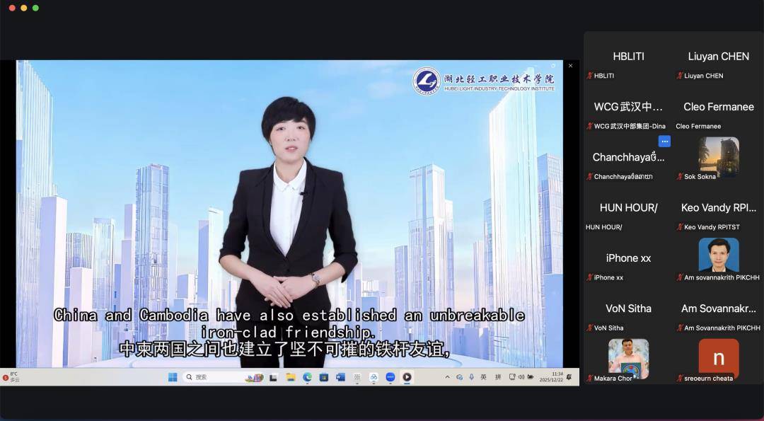 开班仪式上,柬埔寨劳工与职业培训部部长顾问Sokha Mov女士通过视频致辞。她表示,希望通过本次培训,进一步加强柬埔寨与中国在职业教育领域的交流合作,持续提升柬埔寨职业院校教师的专业能力与教学水平,为本土产业发展培养更多高素质技术技能人才。