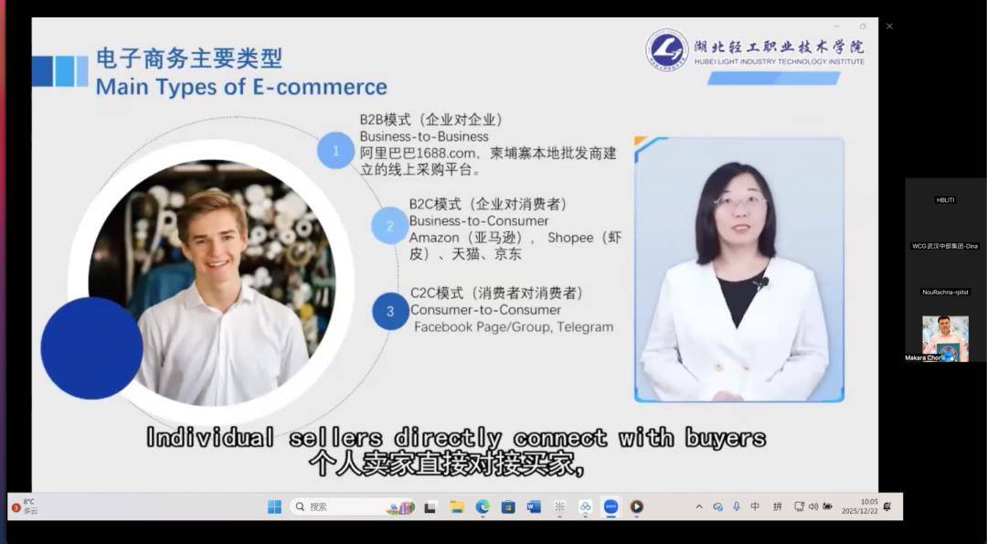 本次培训以“本土化、实战化、教学化”为原则,采用线上授课方式,培训周期为12月22日至12月27日。课程内容涵盖柬埔寨电子商务市场分析、跨境电商平台运营、直播电商与短视频、AI辅助教学、AI选品与数据分析以及实践项目成果转化等多个模块,通过案例讲解与互动交流相结合的方式,全面提升参训教师的专业素养与教学能力。