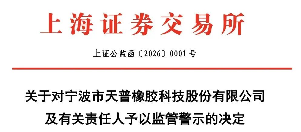 今年1月5日,上交所也发布关于对宁波市天普橡胶科技股份有限公司及有关责任人予以监管警示的决定。