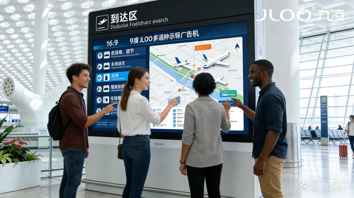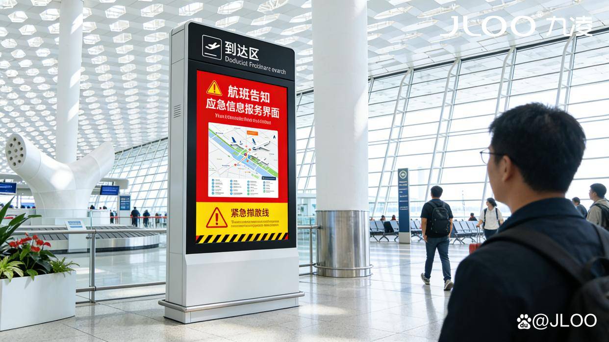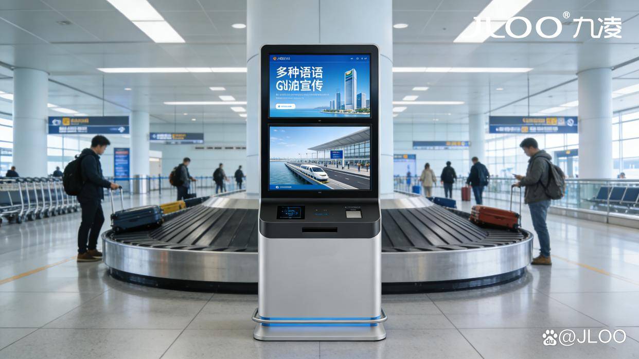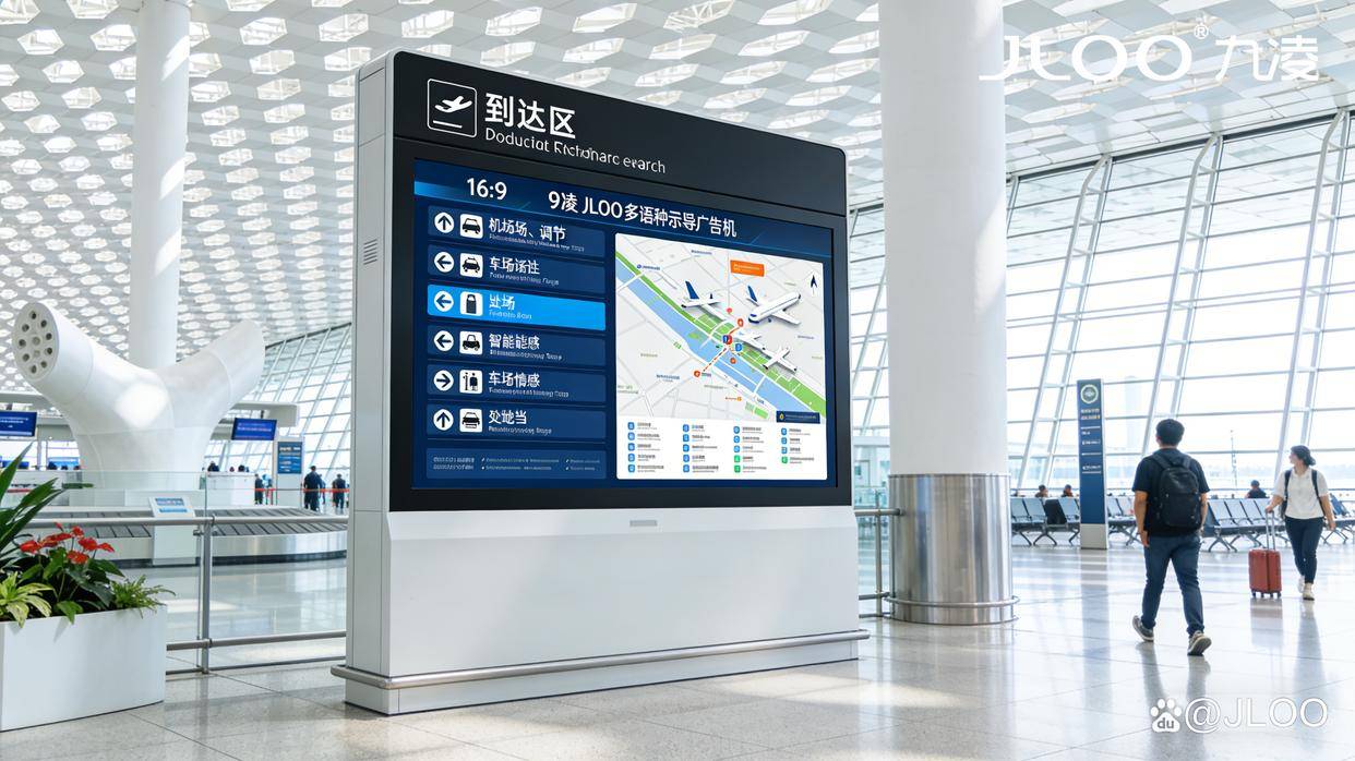 以九凌JLOO智能终端为载体,构建覆盖机场到达区(行李提取处、出口通道、换乘枢纽)的“多语种导览+精准广告+应急联动”三位一体智慧服务网络,兼顾旅客体验优化与运营价值提升,打造国际化机场服务新标杆。