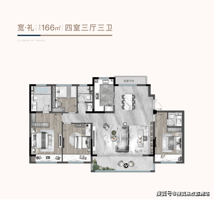 熙和樾庭售楼处电话: 当人生攀登至理想高度,生活的宽度也需要契合匹配。熙和樾庭匠筑建筑面积约166㎡四室三厅三卫,以宽境敬献人生高度,犒赏人生大成。