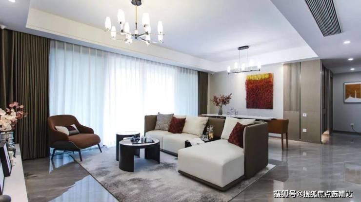 约6.7米排场大横厅,熙和樾庭售楼处电话: 使空间整体更为通透,在拥有宽阔视野的同时,采光面也更为丰富,营造了奢阔的社交氛围。