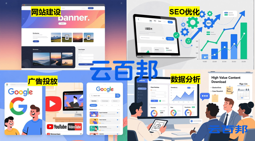 独立站是“鱼塘”,而谷歌广告是高效的“引水管”。云百邦将独立站建设与谷歌广告代运营服务深度整合,形成获客闭环。我们的技术团队会针对网站进行全面的SEO基础优化和速度优化,确保其符合谷歌等搜索引擎的偏好。在广告投放端,我们基于对行业关键词的深入研究,为企业搭建高意向关键词库,并设计与之高度匹配的广告创意与落地页。